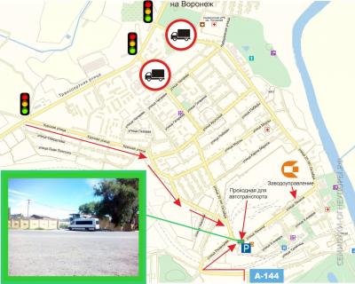 Зеленым цветом отмечен проезд с трассы А-144